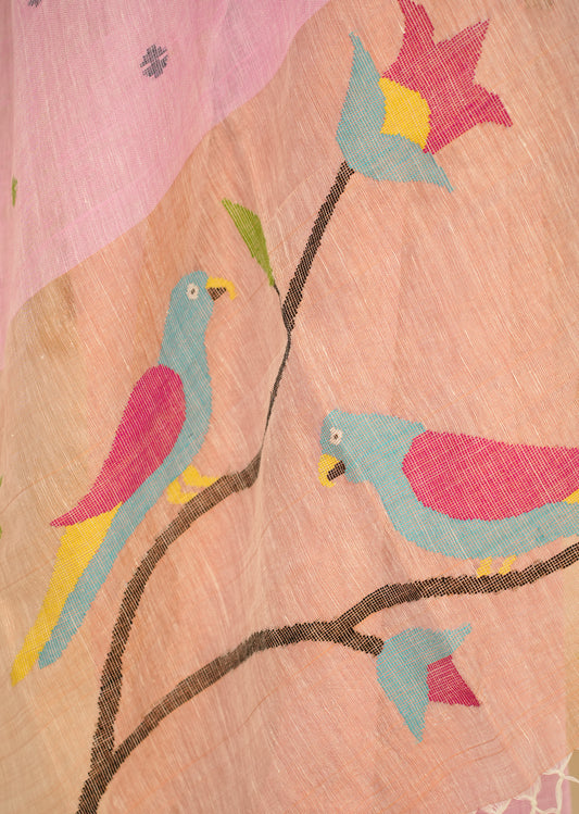 Rosé Whisper – Handcrafted Floral Linen Saree in Dual Tone