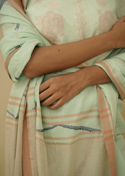 Neelakshi – Handwoven Purple & Teal Striped Mul Cotton Saree with Shimmer Pallu