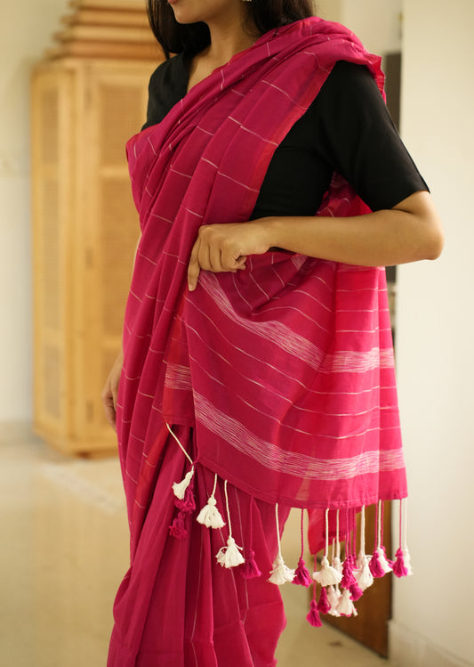 Gulabi Rhythm – Handwoven Pink Striped Mul Cotton Saree