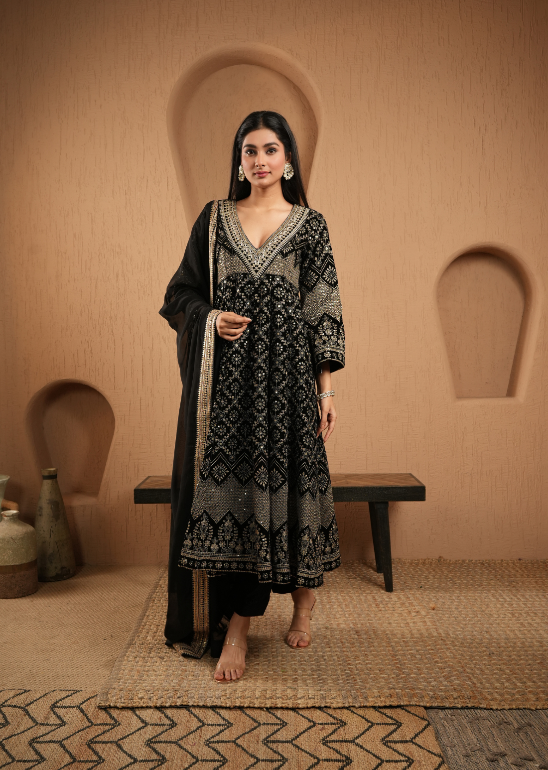 Designed for a flattering silhouette, the Anarkali drapes beautifully, enhancing your grace and poise. Pair it with statement jewelry and classic heels for an effortlessly regal look.