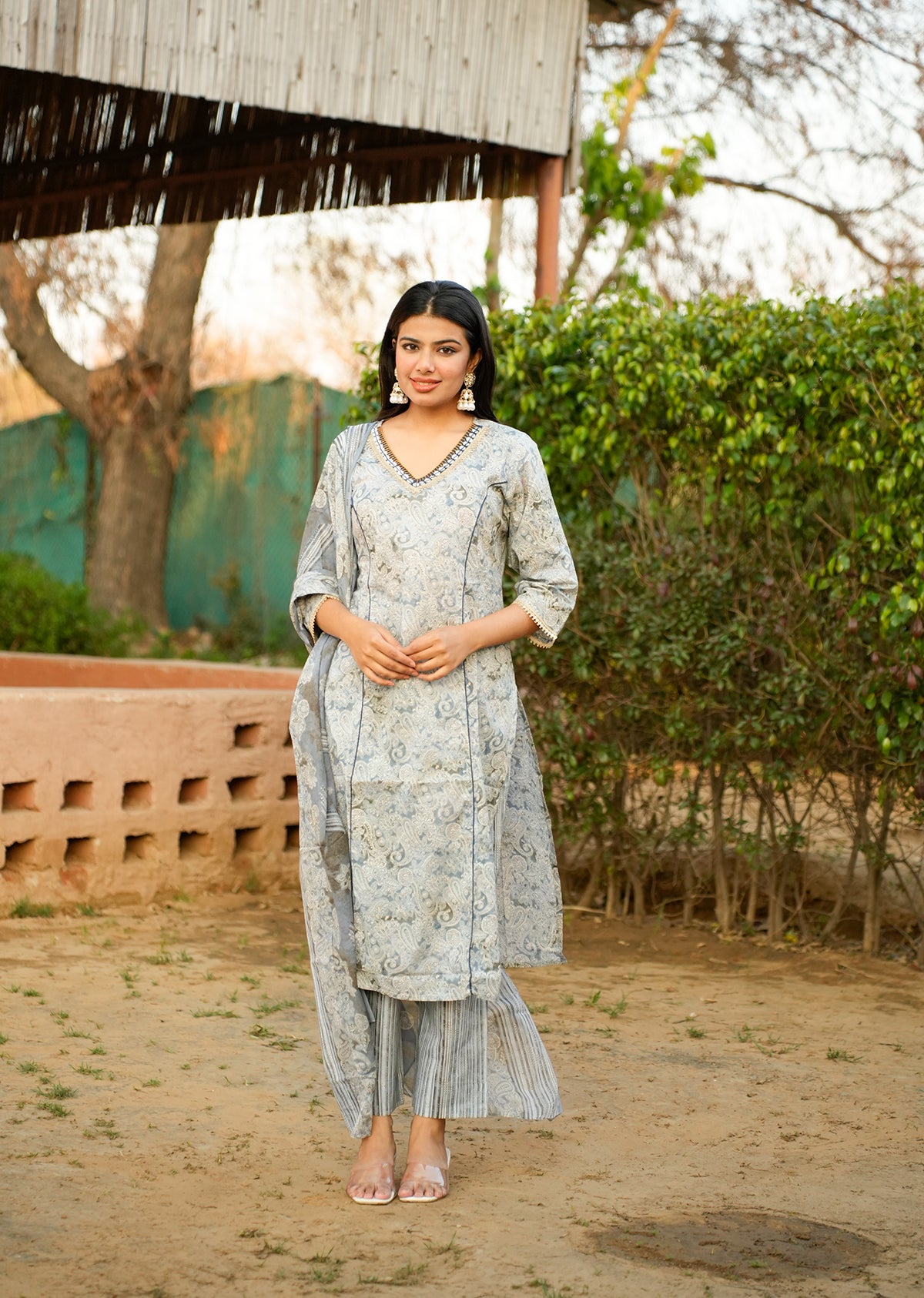 Blue Cotton Kurta Set with Dupatta – Everyday Grace