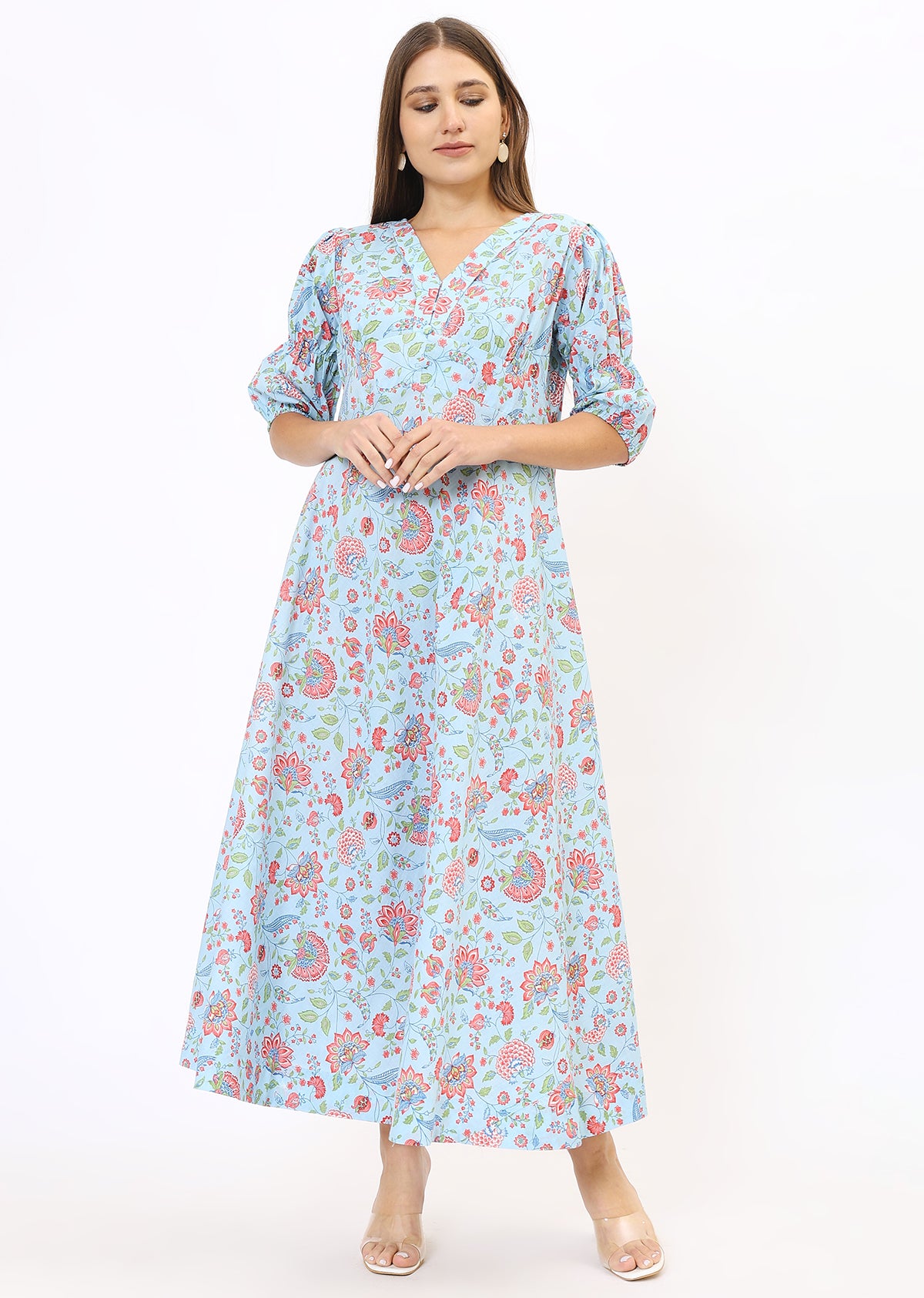 Product Specialty :Step into effortless elegance with the Blue Printed Maxi Dress, a perfect blend of comfort and sophistication. Designed with intricate prints and a flowing silhouette, this maxi dress exudes a timeless charm, making it an ideal choice for casual outings, festive gatherings, or vacation wear. The soft fabric drapes beautifully, ensuring all-day comfort, while the subtle detailing adds a touch of refinement. Crafted with care by Uttarraa Fashions Pvt. Ltd., this dress promises style and grace in every step.