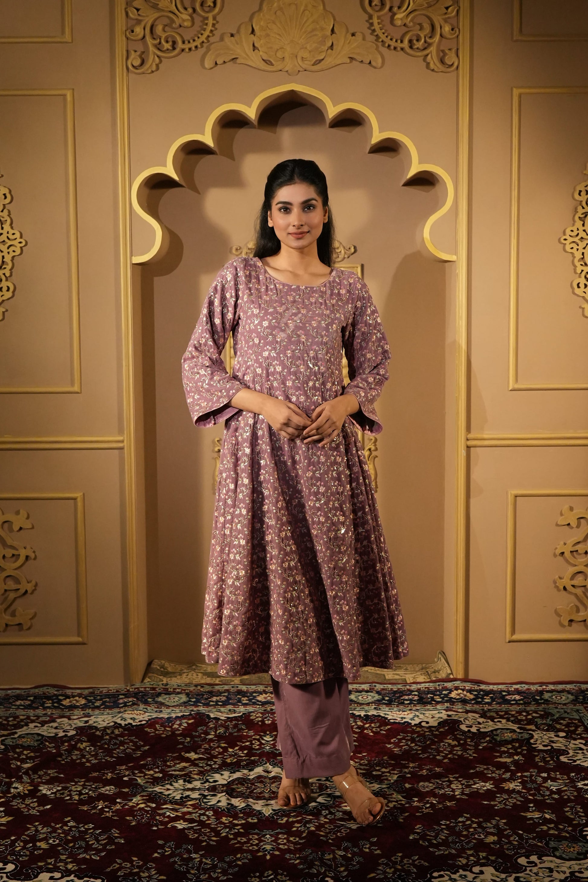 Brandy Rose Velvet Embroidered Anarkali With Pants