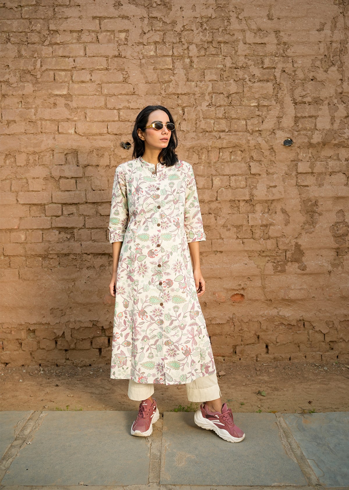 The straight-fit kurta flatters every body shape while offering all-day comfort. The pants come with a relaxed fit, allowing easy movement. This set is perfect for those who want style without compromising on comfort. Order your true size for a perfect fit, or size up for a more relaxed, breezy look.
