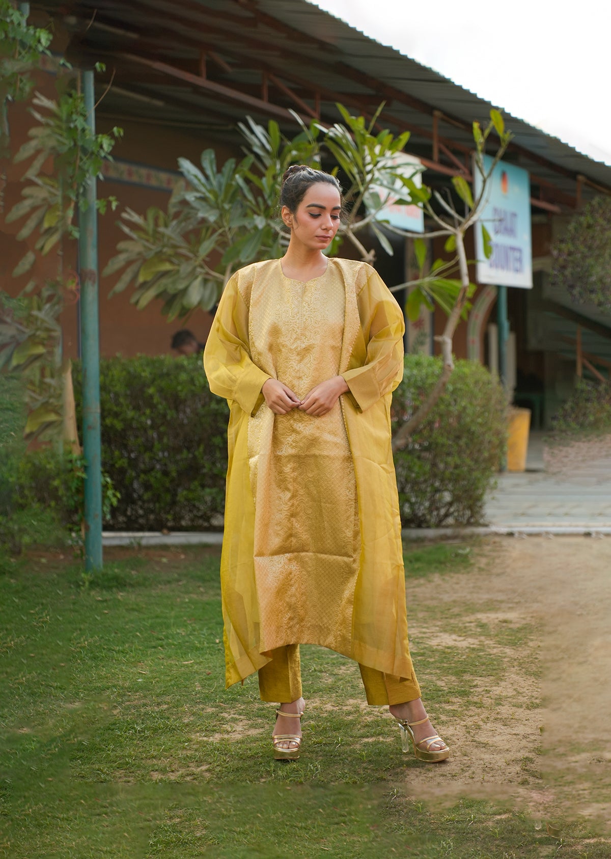 Product specialty : Drape yourself in the sheer elegance of the Golden Yellow Kaftan Set – 2.0 Edition by Uttarraa Fashions Pvt. Ltd. A perfect blend of luxury and comfort, this ensemble exudes sophistication with its rich golden hue and flowing silhouette. Ideal for festive occasions, evening soirées, or statement-making casual wear, this kaftan set is designed to elevate your style effortlessly.