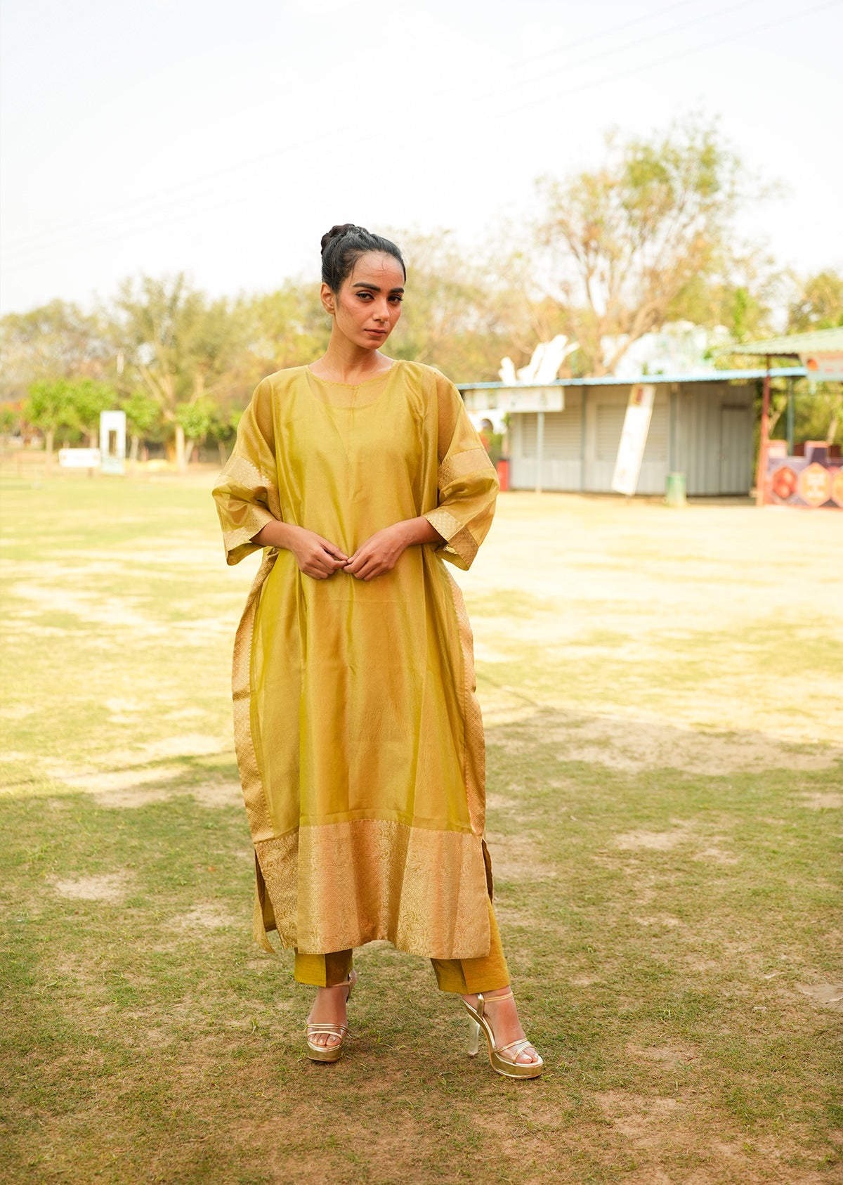 Product specialty :Step into sophistication with the Golden Yellow Kaftan Set with Pants from Uttarraa Fashions Pvt. Ltd. This ensemble blends timeless elegance with modern comfort, making it perfect for festive occasions, evening gatherings, and celebrations.