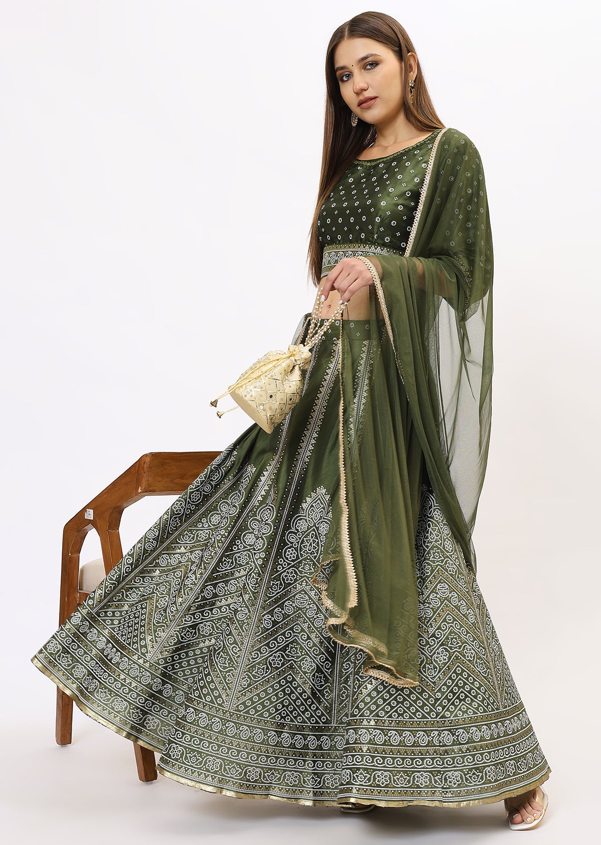 Green & Gold-Toned Lehenga & Choli With Dupatta