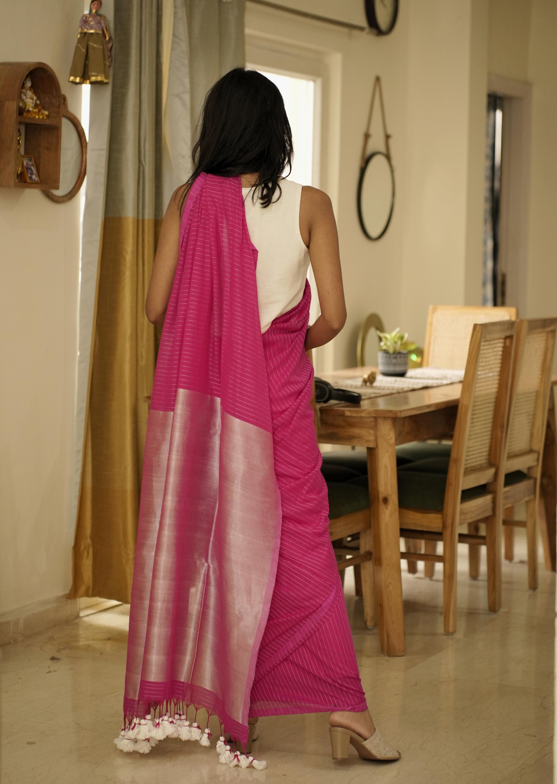 Gulabi Rhythm – Handwoven Pink Striped Mul Cotton Saree