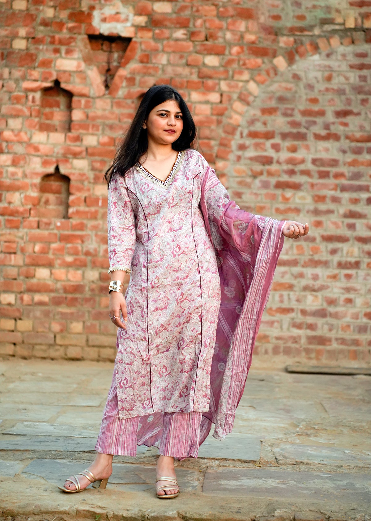 Lavender Cotton Kurta Set with Dupatta – Soft Elegance