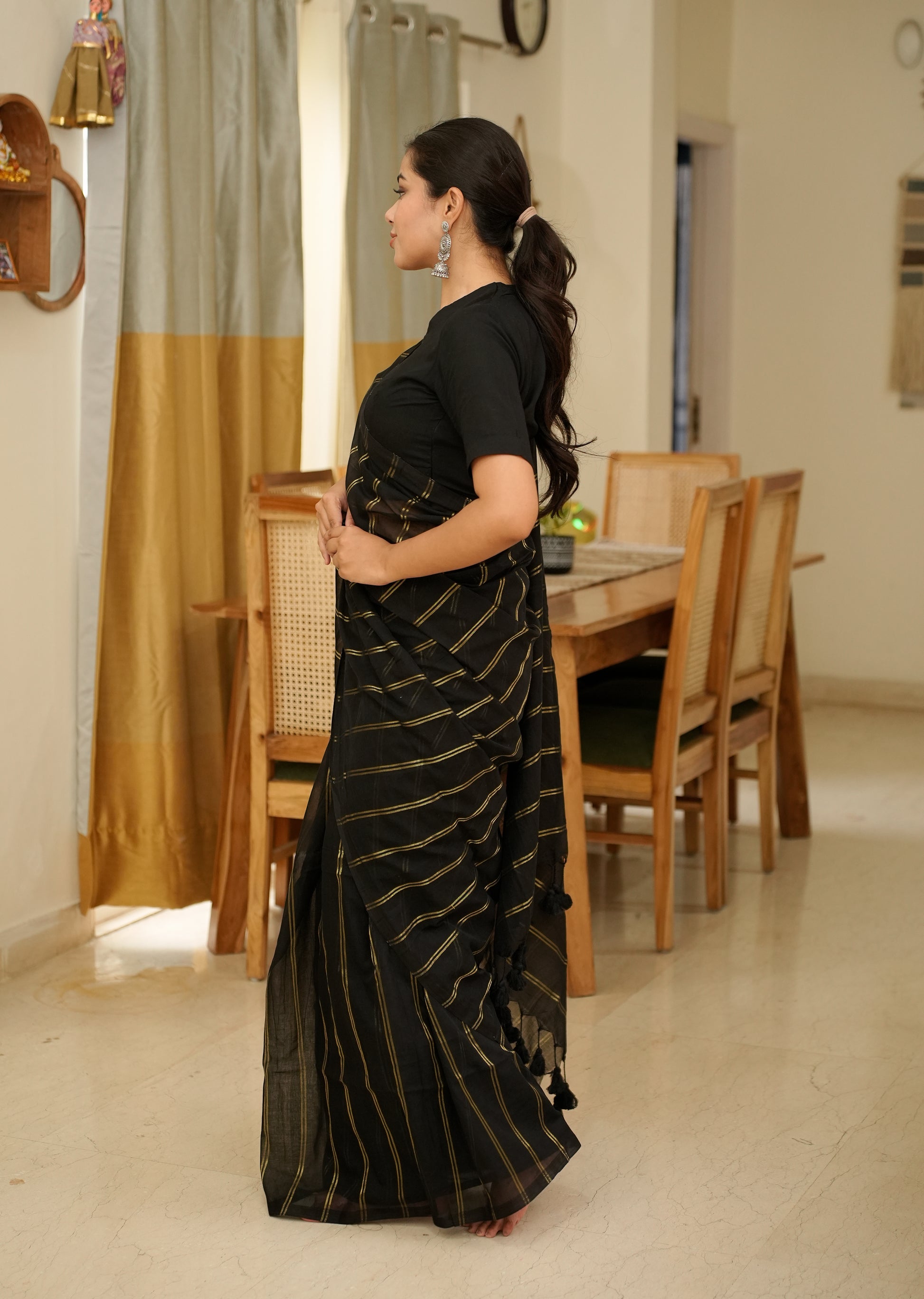 Product specialty : Drape yourself in elegance with our Pastel Rainbow Handwoven Cotton Saree, a charming blend of tradition and modern flair. This saree features soft, multicolored stripes in hues of blush pink, lemon yellow, mint green, and sky blue — creating a refreshing and youthful aesthetic. Crafted from breathable cotton, it's perfect for all-day comfort whether you're attending a casual brunch or a festive get-together. The saree is paired with a contrasting lime green blouse, adding a pop of vibrancy to the pastel tones. The pallu is adorned with delicate tassels that bring movement and playful detail to the overall look.