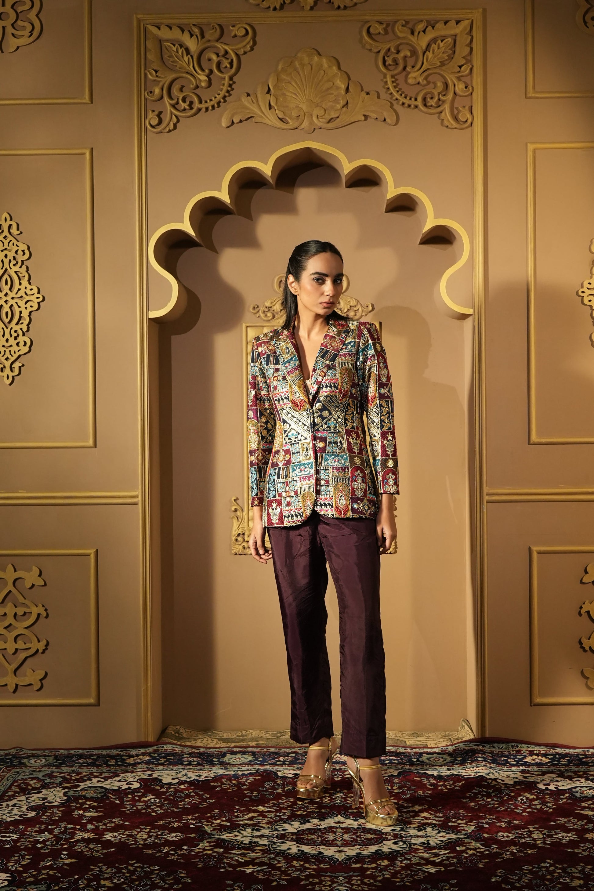 Designed for a refined and flattering fit, this blazer accentuates your frame while ensuring comfort and ease of movement. Style it with contrasting bottoms or traditional wear for a striking, fashion-forward look.