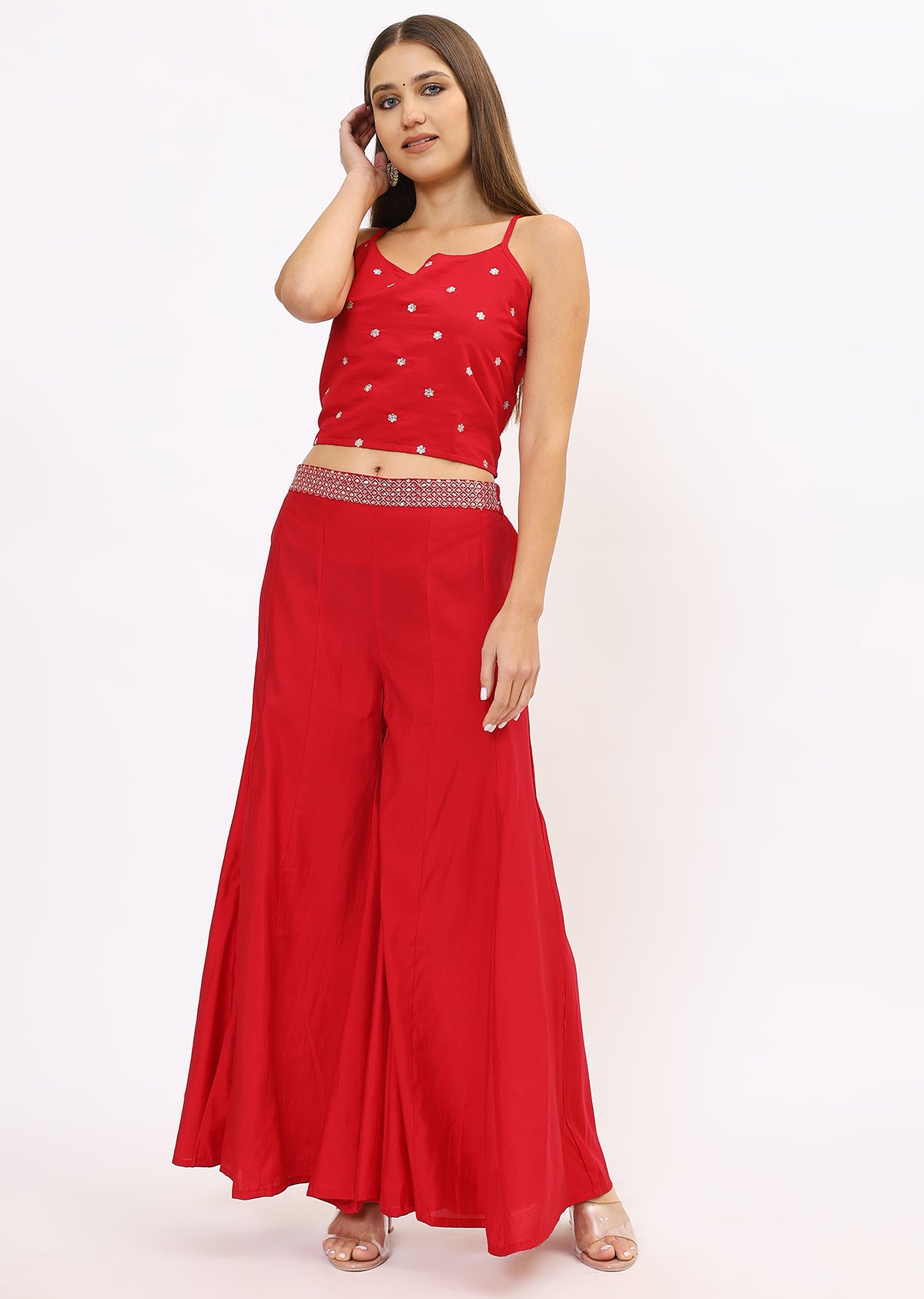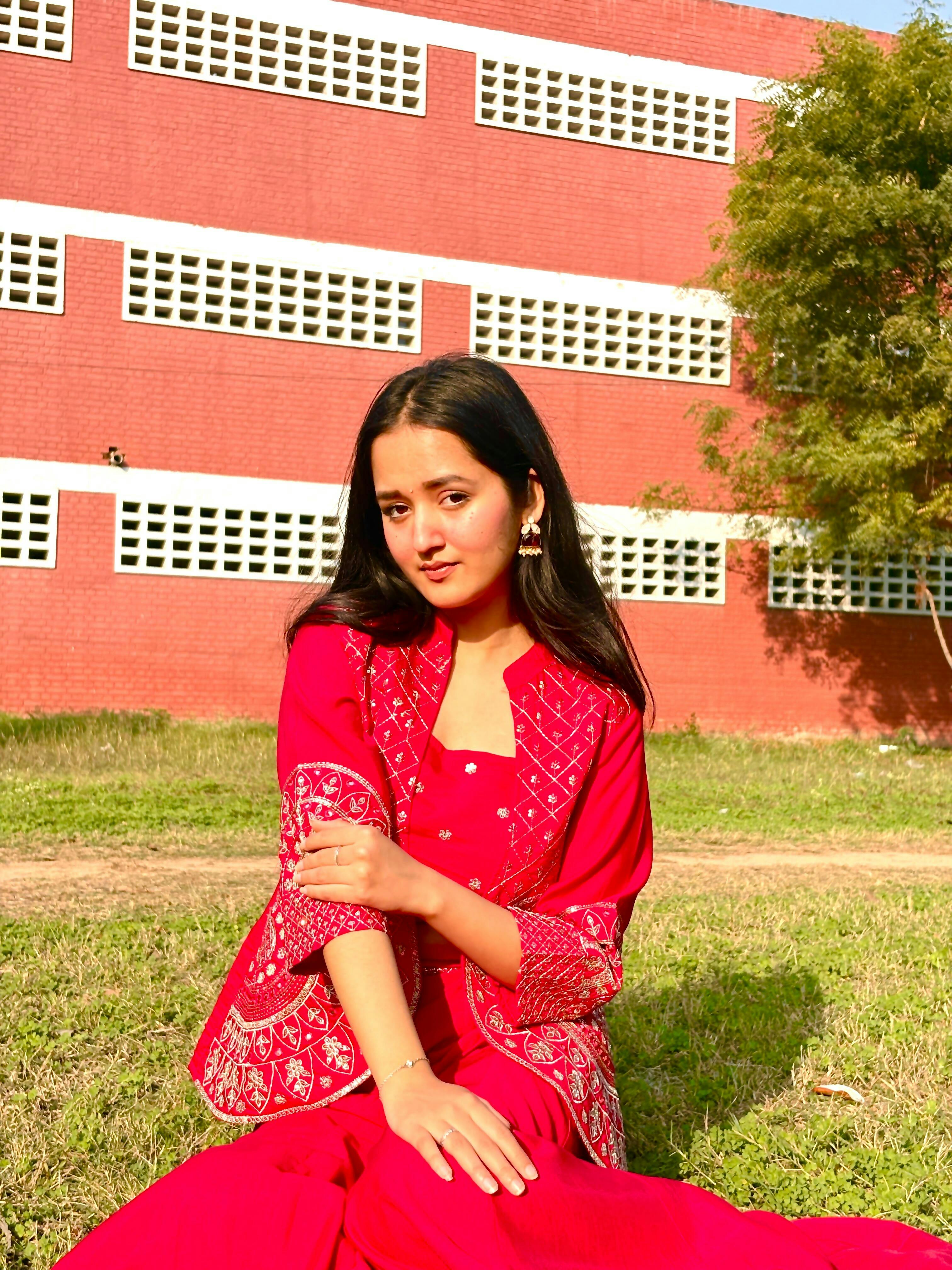 Glamorous Red Shimmer Kurta Set With Dupatta
