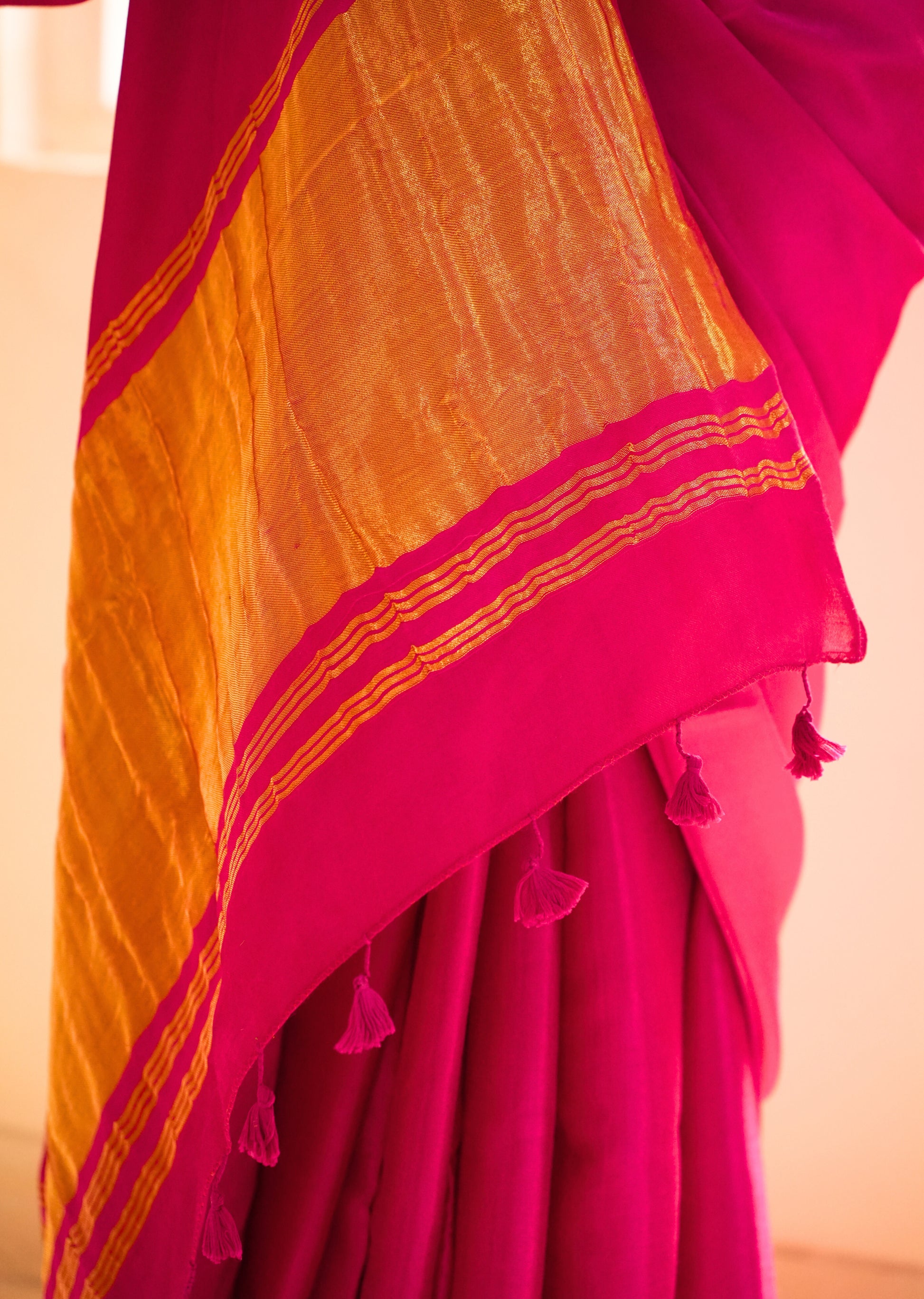 Rani Radiance – Pink Silk Saree with Gold Zari Border